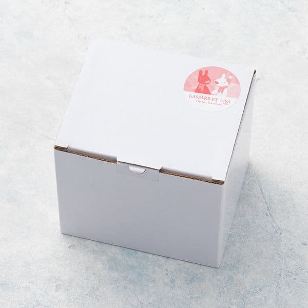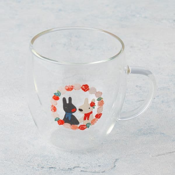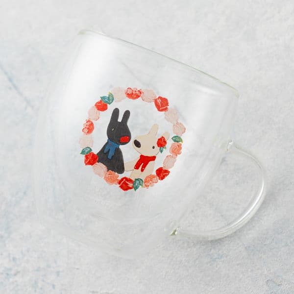 リサとガスパールの可愛い絵柄が特徴のガラスマグ。