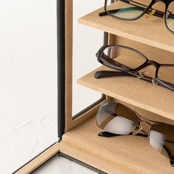 内生地にベルベットを使用しているので、大切なメガネコレクションを美しく保管することができます。