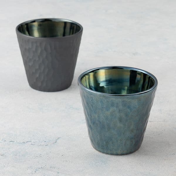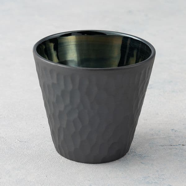 鎌倉彫りのような陰影ある削ぎ模様が美しいロックカップ。