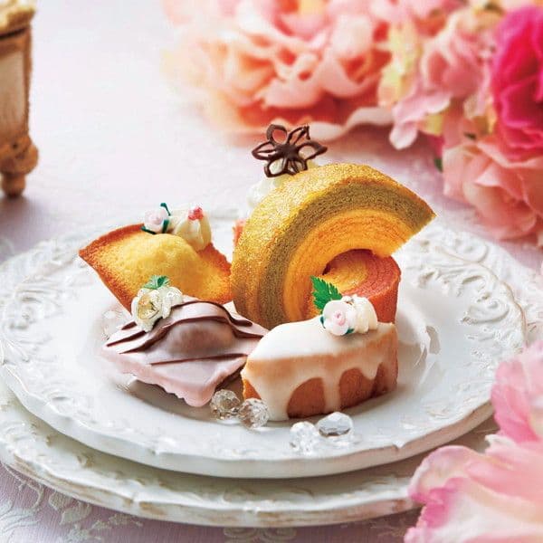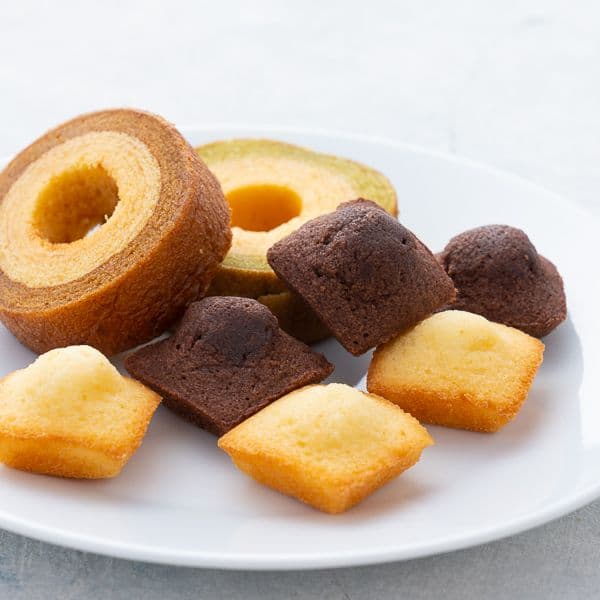 ちっちゃなフィナンシェ(プレーン・チョコ)×各5・ミニバウムクーヘン(キャラメル&ミルク・抹茶&ミルク)×各1・紅茶×2