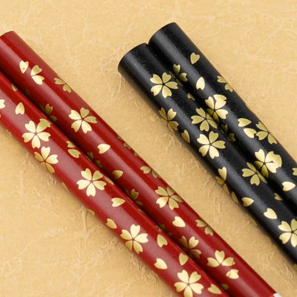 日本の食卓を表しているかのような赤と黒の汁椀と箸のセットです。椀の丸みが手に馴染み、口当たりはやさしく。箸の桜模様は金色に輝きを放ち、手元を美しく見せてくれます。また、電子レンジ対応も現代に合わせて、大変機能的です。
